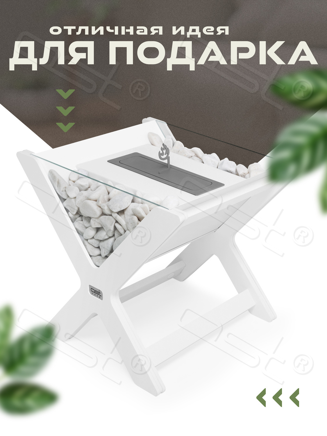 Современный и экологичный дизайн: Биокамин "ECO X-Flame" сочетает в себе современный стиль и экологичность. Основание из МДФ придает изделию легкость и изящность, а его форма в виде буквы "X" создает выразительный визуальный эффект, который гармонично вписывается в любой интерьер.