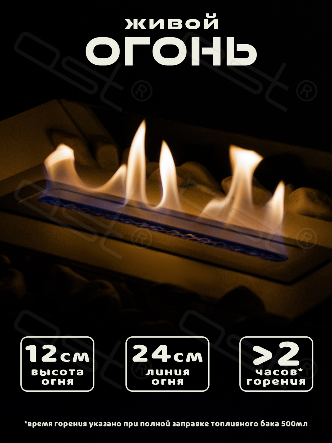 Экологичное топливо: "ECO X-Flame" работает на биотопливе, что делает его экологически чистым и безопасным для использования в закрытых помещениях. Легкость в заправке и обслуживание добавляют удобства в повседневной эксплуатации.
