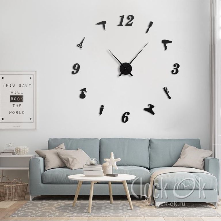 Самоклеящиеся 3D часы – это реальные часы, которые выглядят как предмет искусства. Более того, приобретая эти часы, у Вас появляется возможность проявить свои творческие способности и расположить каждый из элементов часов так, как Вы пожелаете. Благодаря этой особенности Вы можете декорировать стену любой площади в своем доме или офисе, необычные настенные часы можно расположить даже на предметах интерьера с гладкими поверхностями.