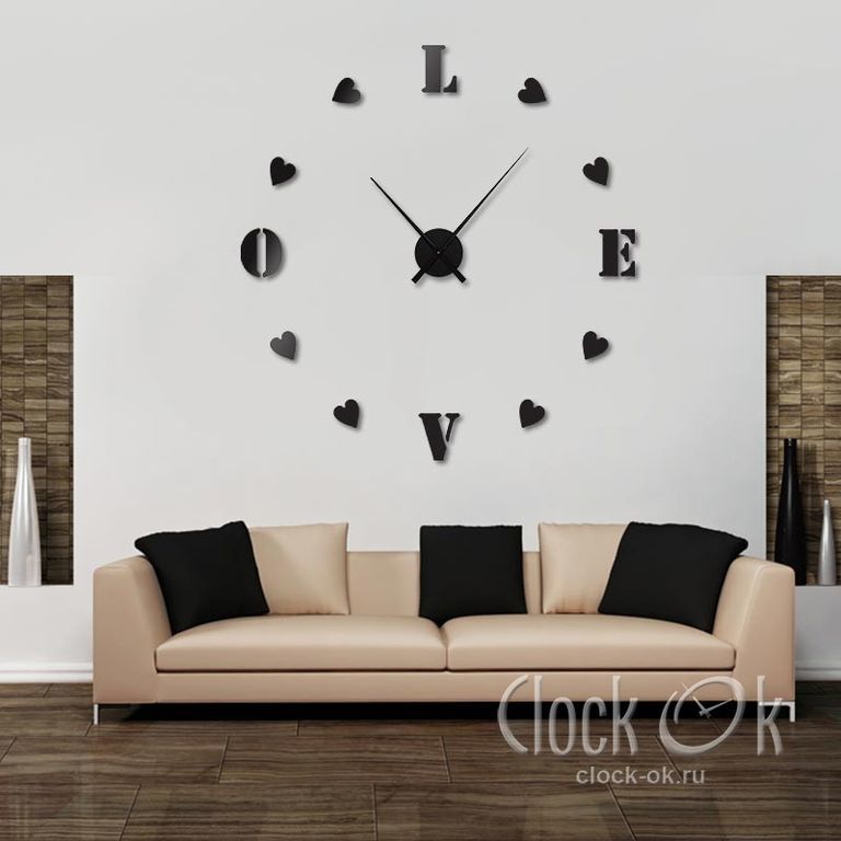 Самоклеящиеся 3D часы – это реальные часы, которые выглядят как предмет искусства. Более того, приобретая эти часы, у Вас появляется возможность проявить свои творческие способности и расположить каждый из элементов часов так, как Вы пожелаете. Благодаря этой особенности Вы можете декорировать стену любой площади в своем доме или офисе, необычные настенные часы можно расположить даже на предметах интерьера с гладкими поверхностями.