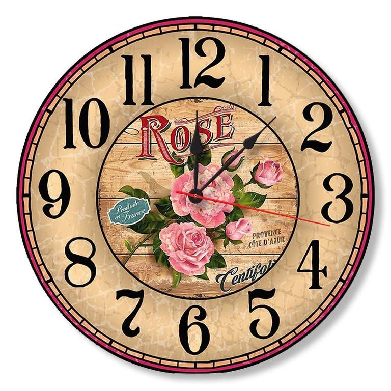 Рисунок устойчив к действию солнечных лучей, а также к попаданию воды и других жидкостей, включая и атмосферную влажность. Циферблат надолго сохраняет разнообразную палитру оттенков и яркие краски не потускнеют с течением времени. Используемые чернила абсолютно без запаха. При атмосферных воздействиях, повышенной влажности или сухости они не будут выделять вредные вещества, что позволяет вешать эти часы даже в детской!