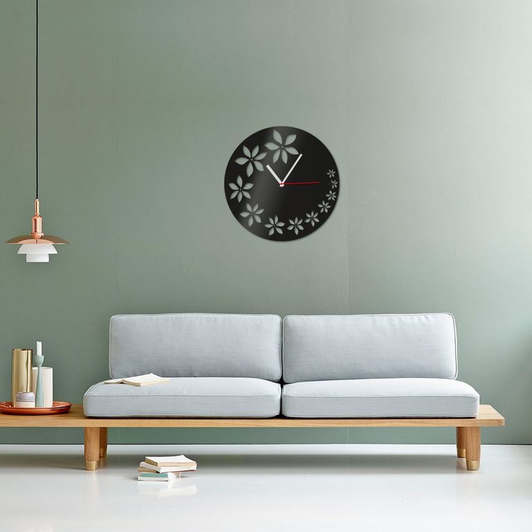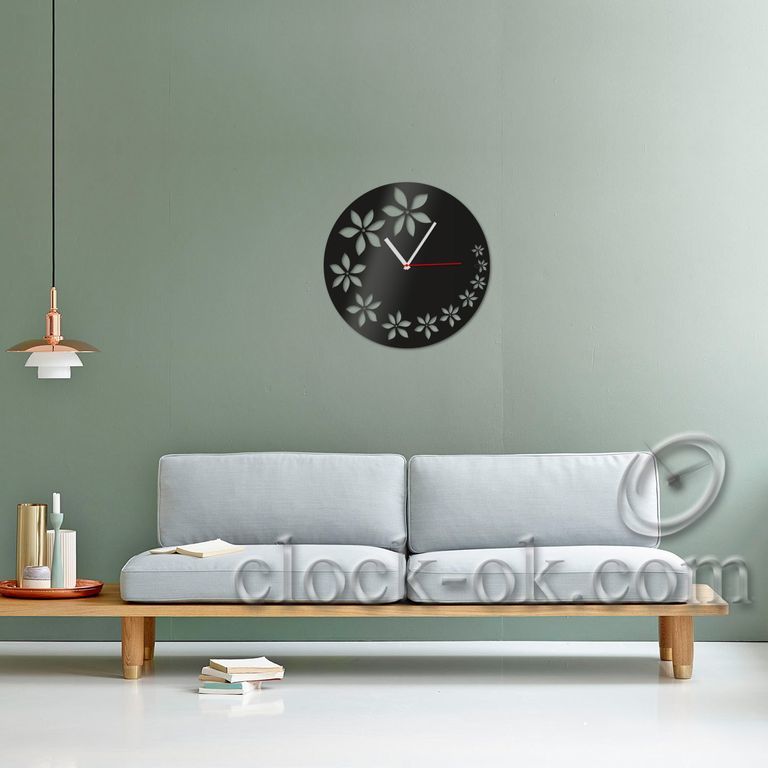 Настенные часы Строгость – очень стильный вариант для сдержанного интерьера. Лаконичный круглый циферблат дополнен интересной композицией из цветов, которая буквально вырезана в нём.