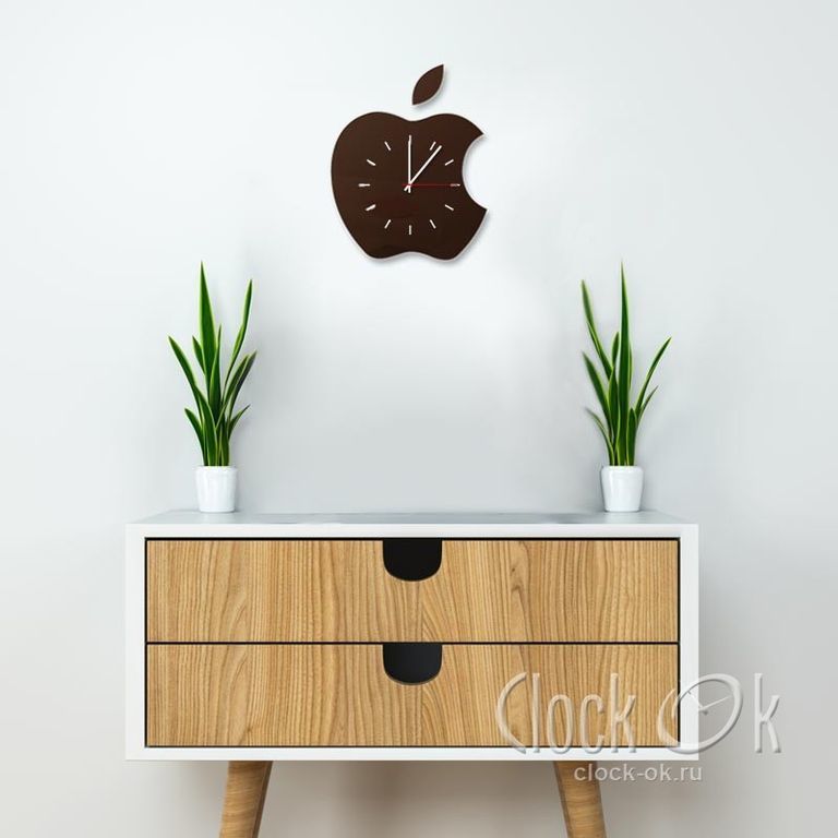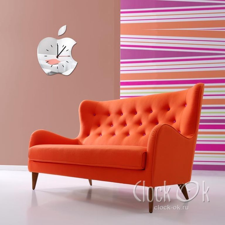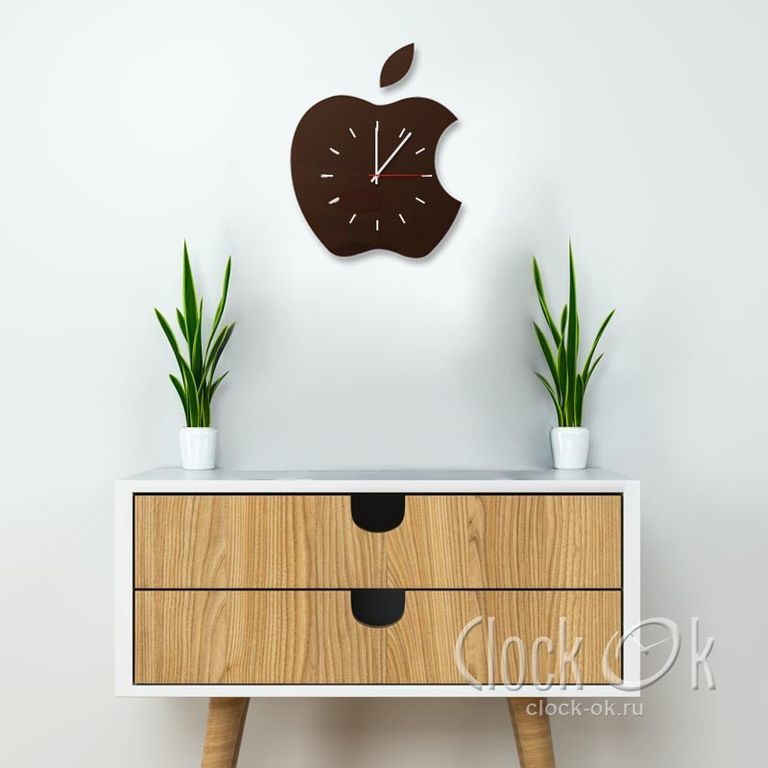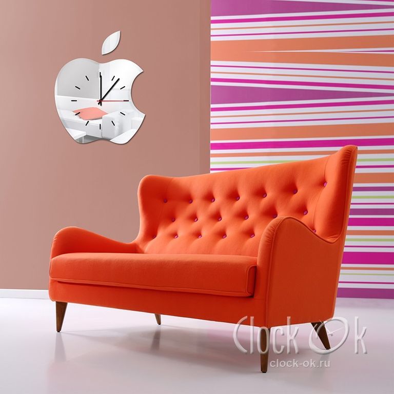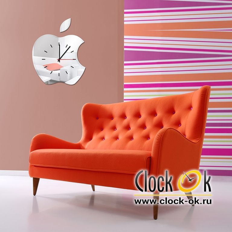 Каждому поклоннику или обладателю продукции Apple точно придутся по душе такие настенные часы. Их отличает оригинальный дизайн, а зеркальная поверхность придает им особый шик.