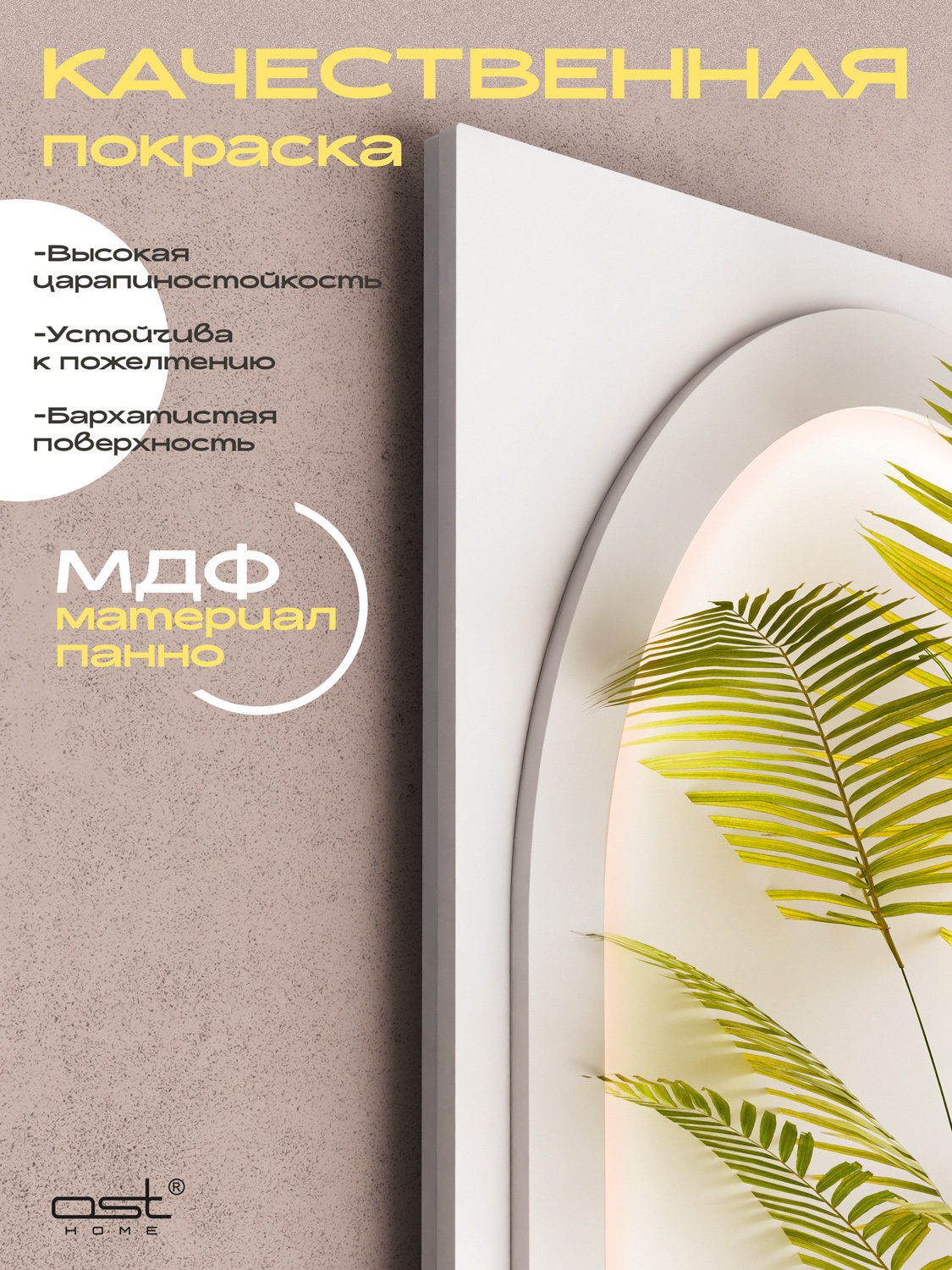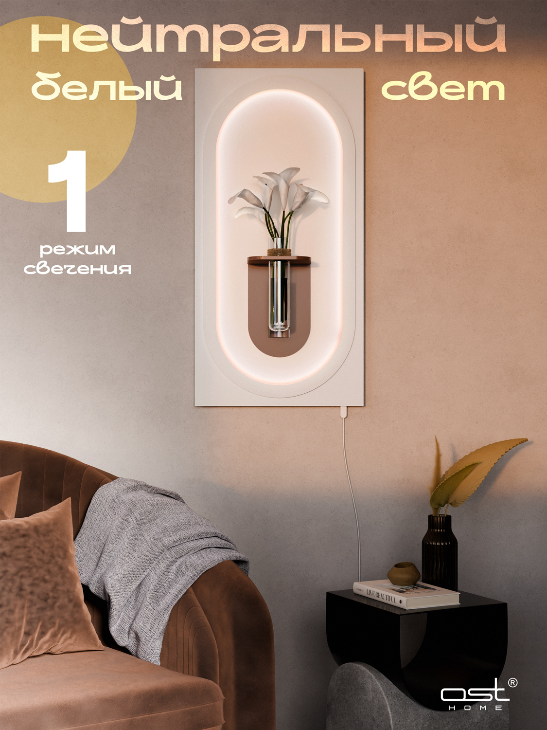 - Уютная подсветка: Мягкое и теплое свечение, льющееся из-за овального контура, создает атмосферу уюта и спокойствия, делая ваш дом еще более гостеприимным.